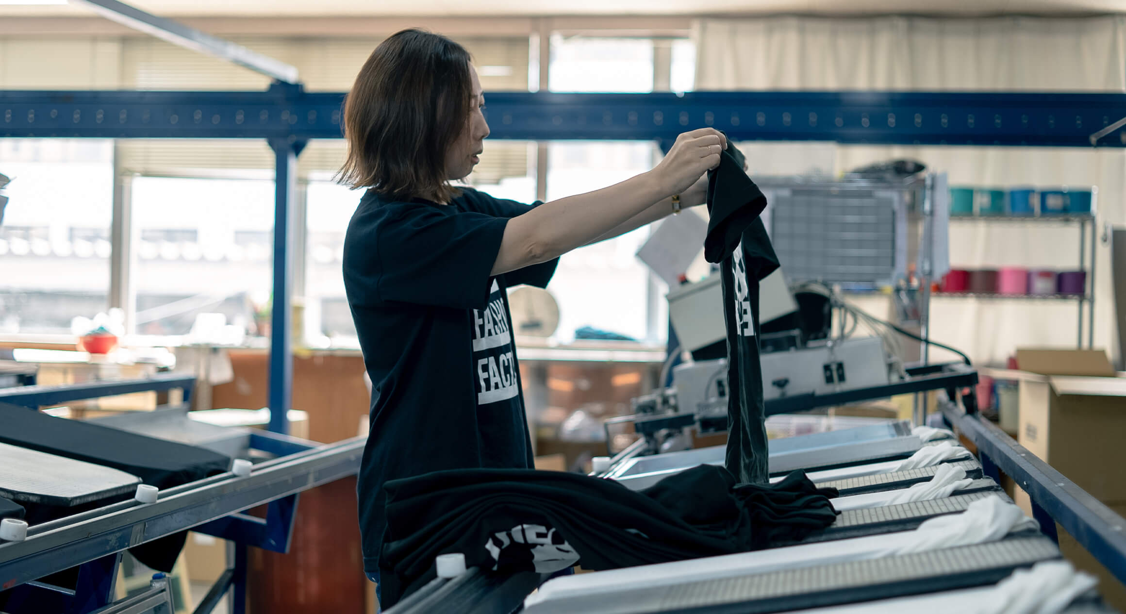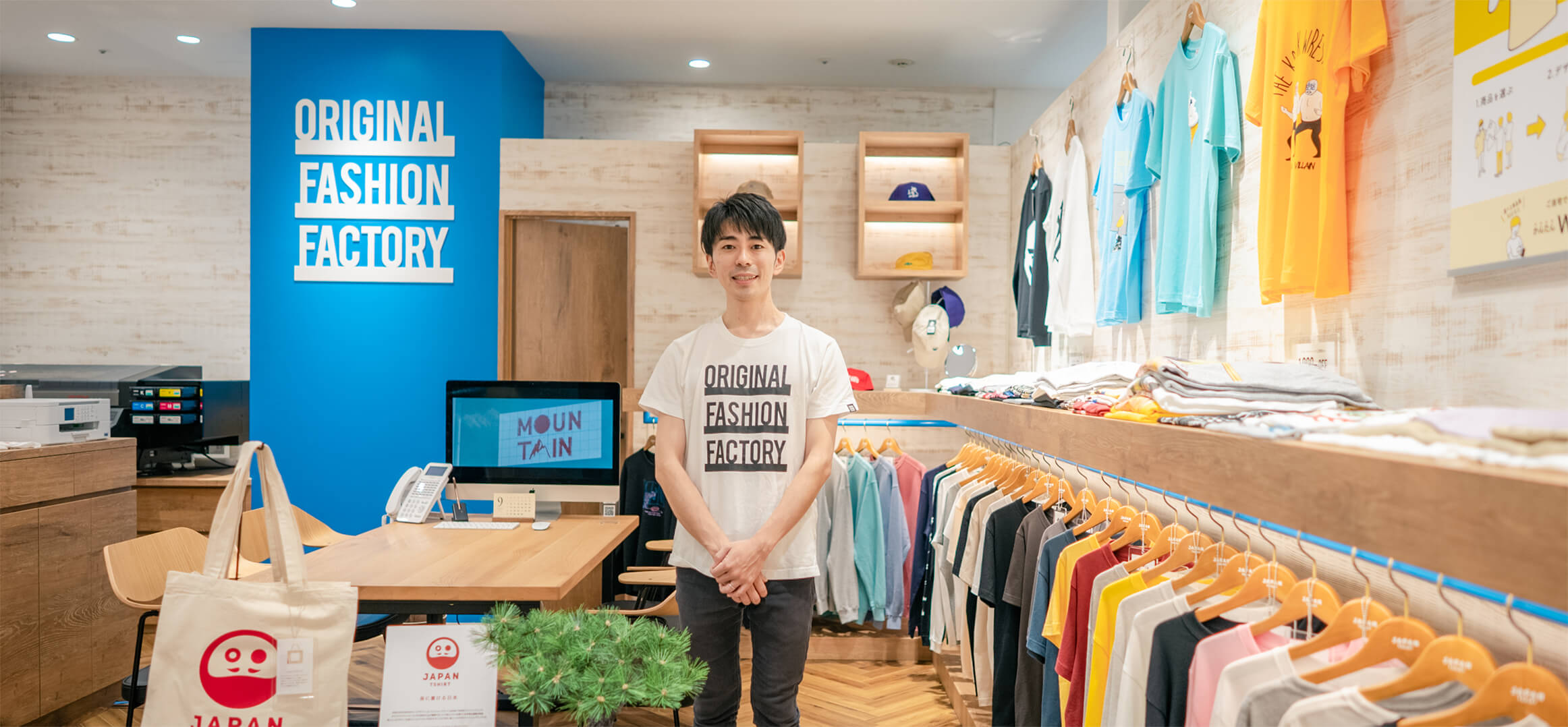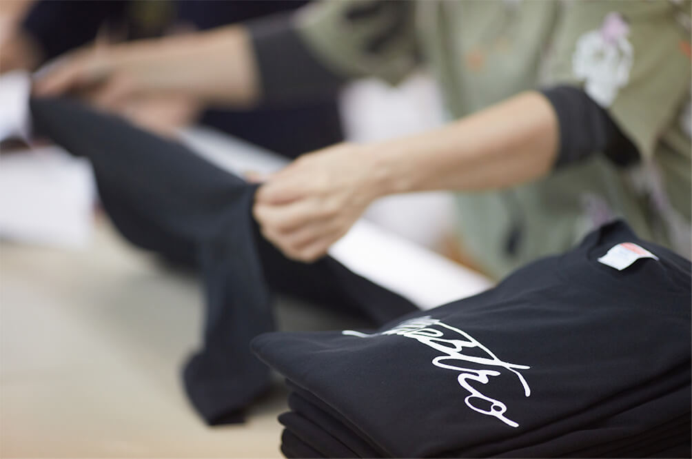 経済合理性から工場を持たないファブレス経営が増えているオリジナルプリント業界内で弊社は「アナログ×デジタル=フロー」をコンセプトに「WEBサービス」・「ショップ展開」・「自社での加工生産」の一貫体制にこだわっているユニークな存在だと思います。